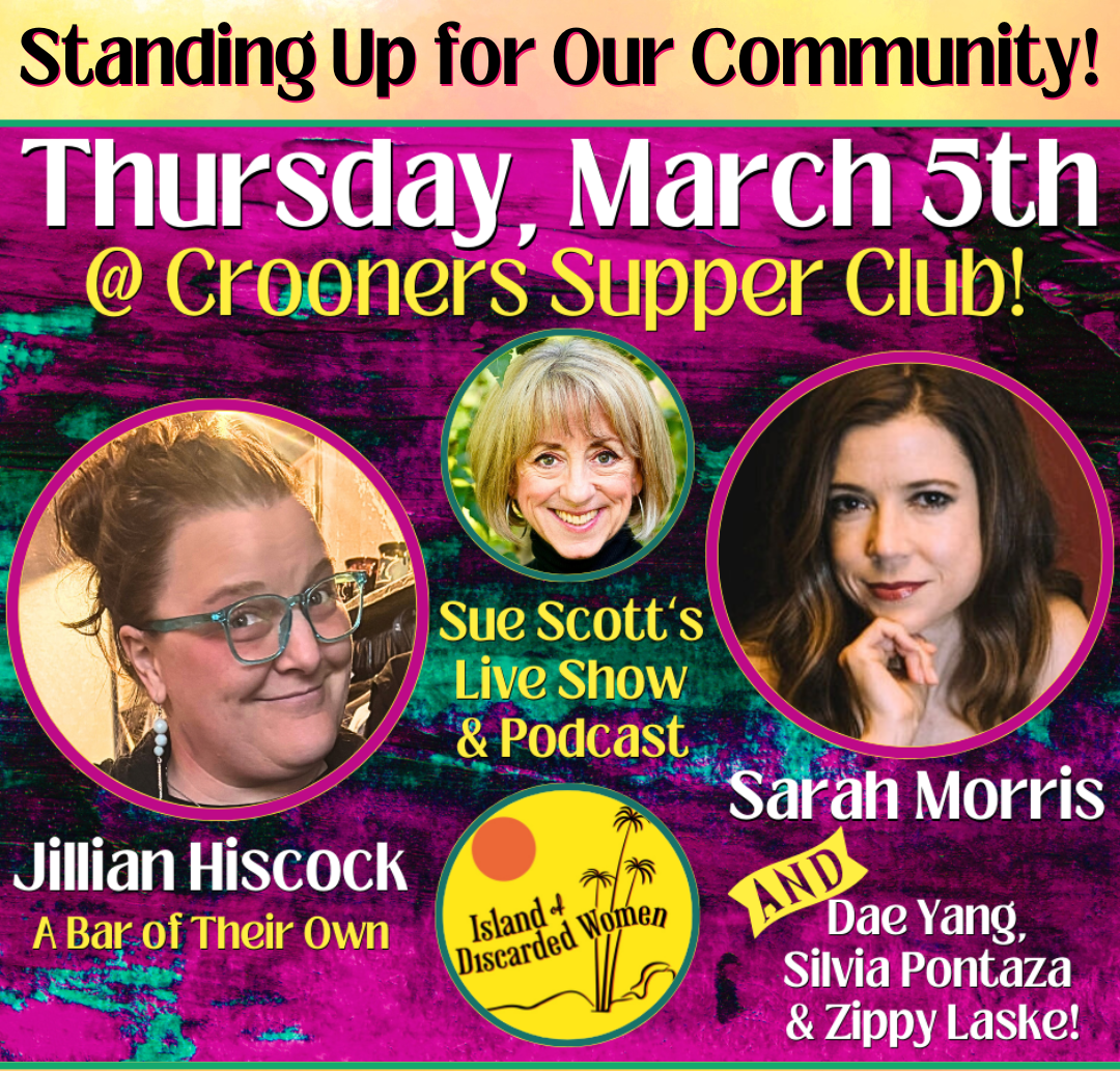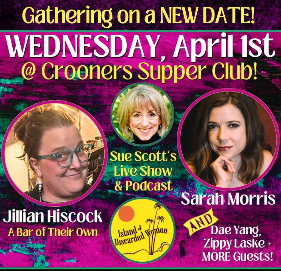 Joining Sue in making Island of Discarded Women happen every time is an ultra talented and extremely flexible cast of actor/storytellers, passionate and gifted singer/songwriters, super skilled audio engineers and crew, accomplished photographers and PR peeps! + Amazing and dedicated volunteers! AND the most inspiring special guests anyone could hope for! Thank you to ALL for stepping up, jumping in and giving so much of our heart and souls to this live “podcast with purpose!” Detailed credits are included with each episode.